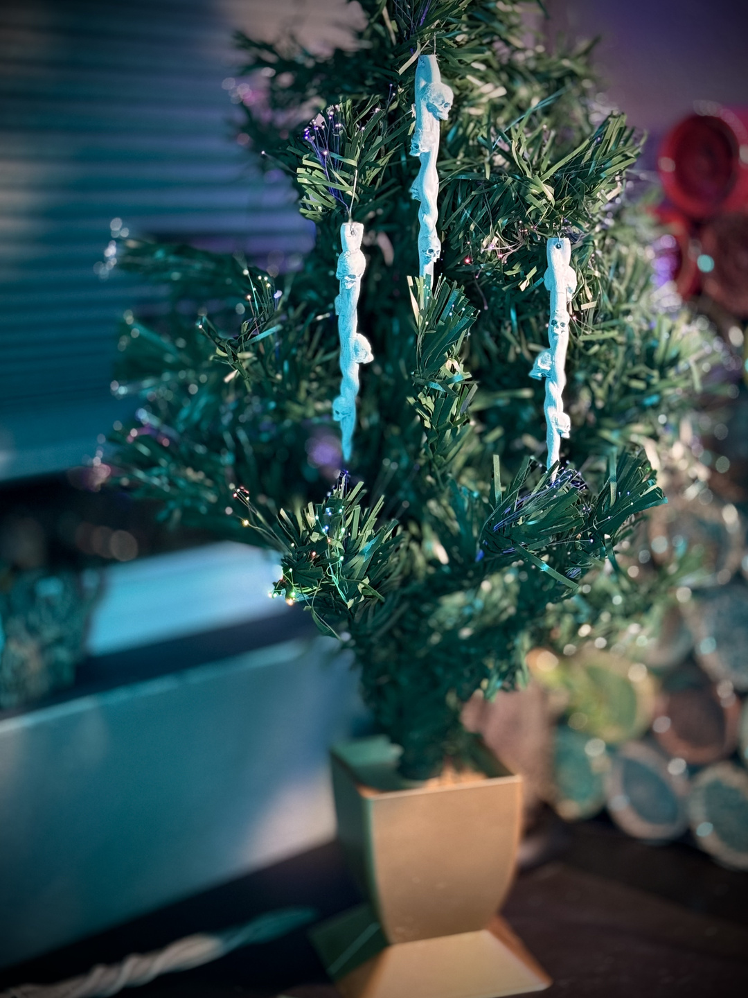 Interesting and unique skull icicles. perfect for any gothic christmas tree.