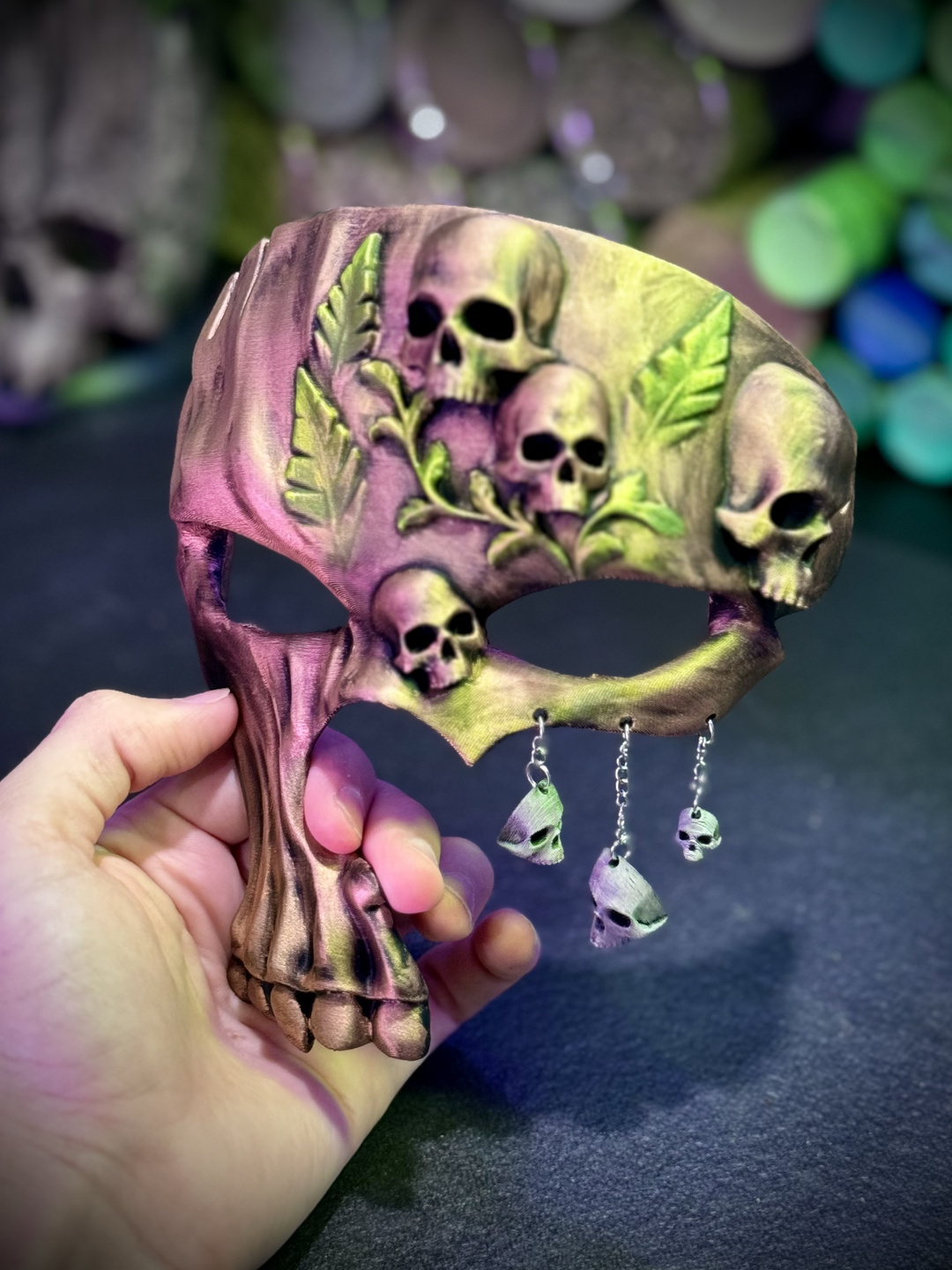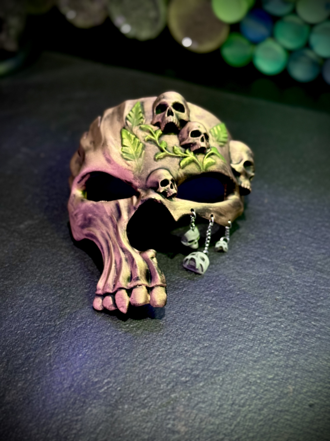This mask seems to hold ancient secrets, its hollow eyes stirring with unseen shadows. When worn, the world around shifts—flickers of forgotten memories and souls lost to the void rush into the mind.